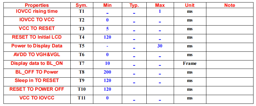 2. এনালগ সক্ষমতা (VGH/VGL/AVDD/VCOM পাওয়ার-আপ): উচ্চ-ভোল্টেজ ড্রাইভিং এবং অ্যানালগ পাওয়ার সাপ্লাই সক্রিয় করুন, তরল স্ফটিক আণবিক প্রান্তিককরণ এবং রঙ তৈরিকে শক্তিশালী করুন।