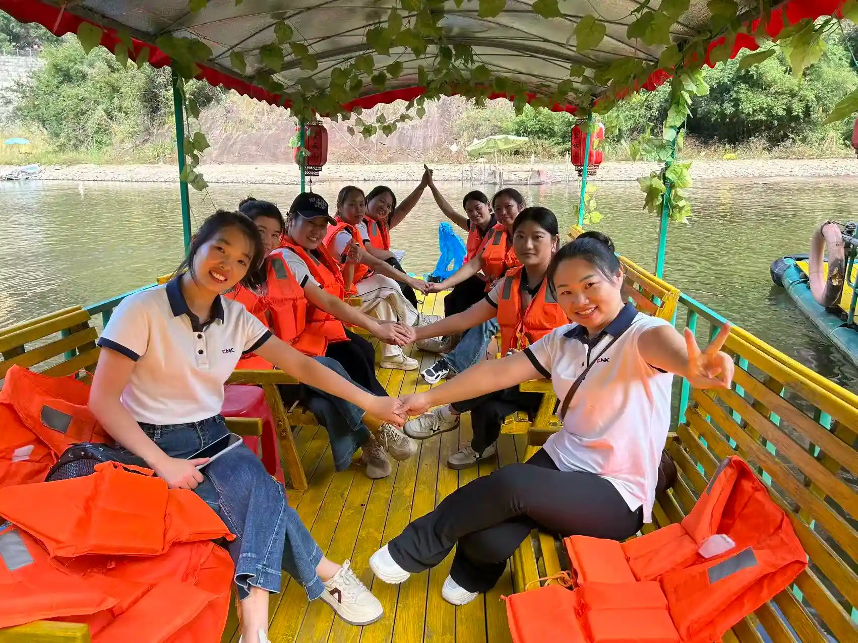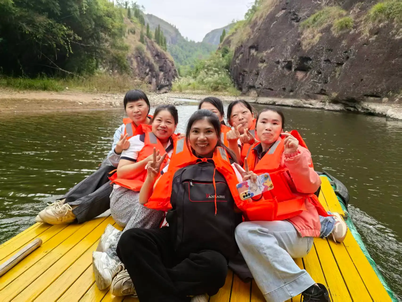 বিকেলের সময়সূচী ছিল আরও অবসরে। দশ লি অত্যাশ্চর্য প্রাকৃতিক দৃশ্যের মধ্য দিয়ে একটি নৈসর্গিক ক্রুজের জন্য পুরো দলটি বাঁশের ভেলায় চড়ে। Danxia পর্বত এবং পান্না জলের মধ্যে গ্লাইডিং, তারা মনোরম দৃশ্যের প্রশংসা করেছে যেখানে "সবুজ পর্বতগুলি গাঢ় ভ্রুর মতো দাঁড়িয়ে আছে এবং স্বচ্ছ জল রেশমের মতো প্রবাহিত হয়।" 3.2-কিলোমিটার জলপথ ধরে, সবাই প্রকৃতির প্রশান্তি এবং সৌন্দর্যে নিজেকে নিমজ্জিত করে আরাম করে।